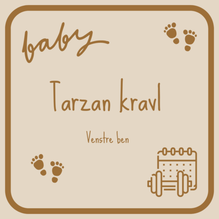 Tarzankravl er ofte et tegn på, at barnet er stærkere i den ene side (her venstre) eller fordi de ikke har samme kontakt til modsatte side. Dette program er til dig, som har et barn som kravler med den Venstre fod i jorden og typisk højre arm i gulvet for at svinge sig frem.